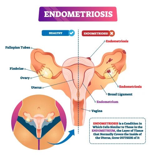 Endometriosis is a very common gynecological condition affecting women in their reproductive years. The cause of endometriosis is still controversial, and the condition involves endometrium (cells making up the internal lining of the uterine cavity), for unknown reasons, growing outside the uterus, most commonly on fallopian tubes, ovaries, bowel, and the pelvic tissue linings.